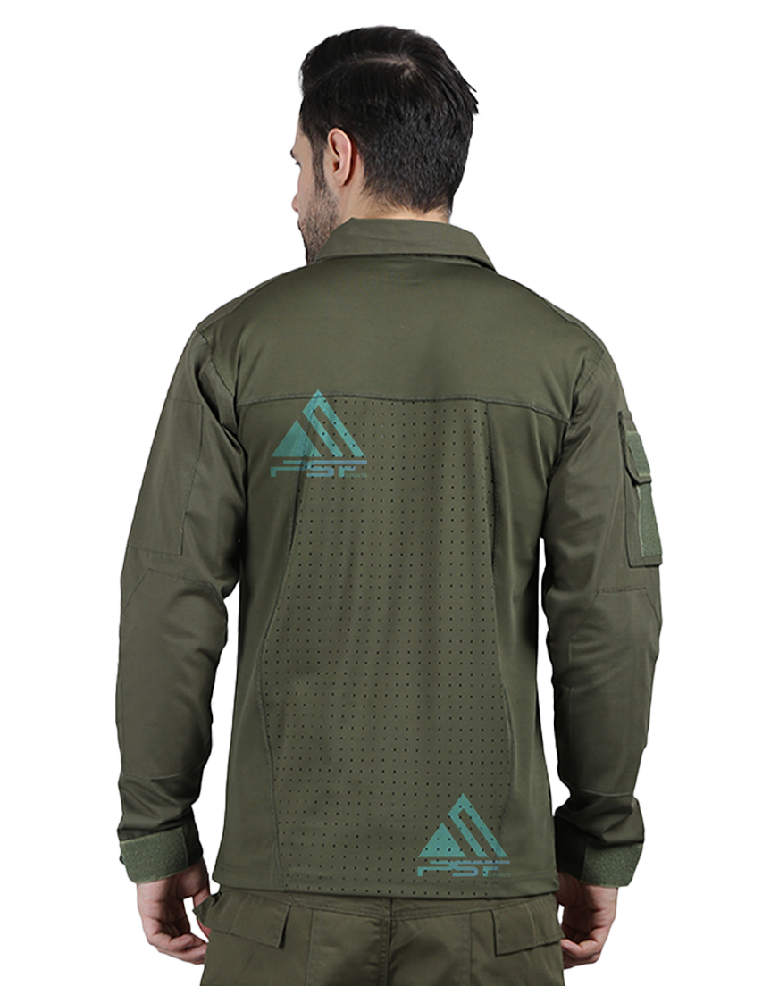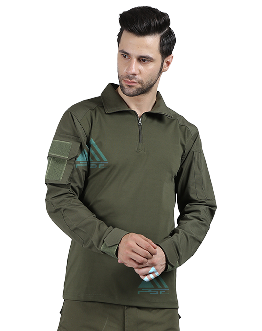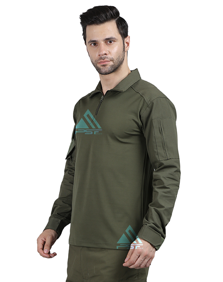 • PSF SPOTRTS Tactical T-shirt Full Sleeves Olive Green, Back Side Laser Cut, Right Hand Side Pocket with Velcro.