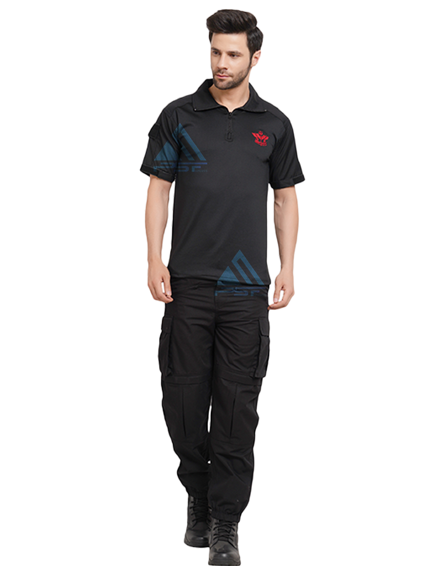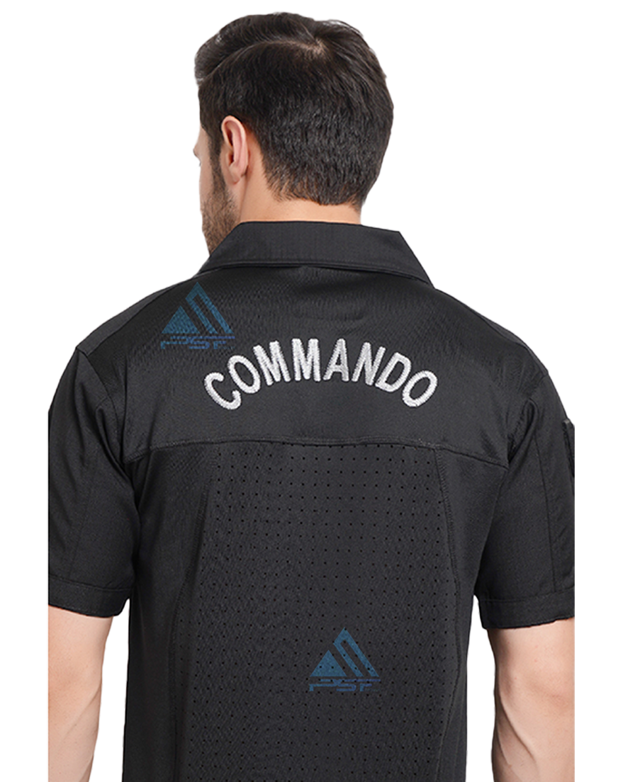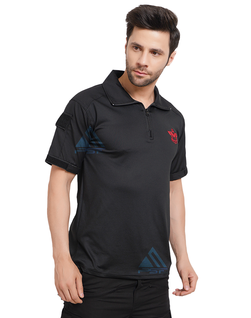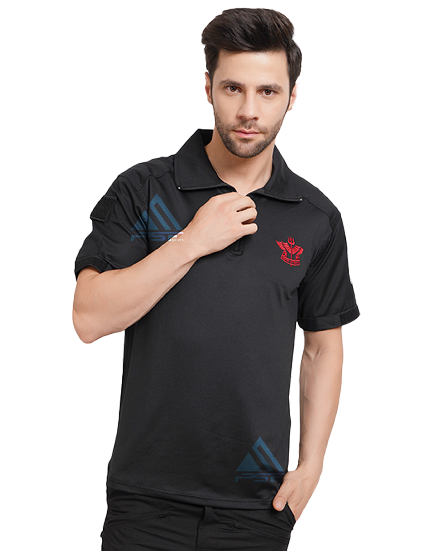 • PSF SPOTRTS Tactical T-shirt Half Sleeves Black With Sahas Ki Vijay Logo , Back Side Commando, Right Hand Side Pocket with Velcro